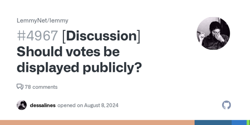 Question I'd like to hear everyone's thoughts on possibly making votes public. This has been discussed in a lot of other issues, but here's a dedicated one for discussion. Positives Could help figh...