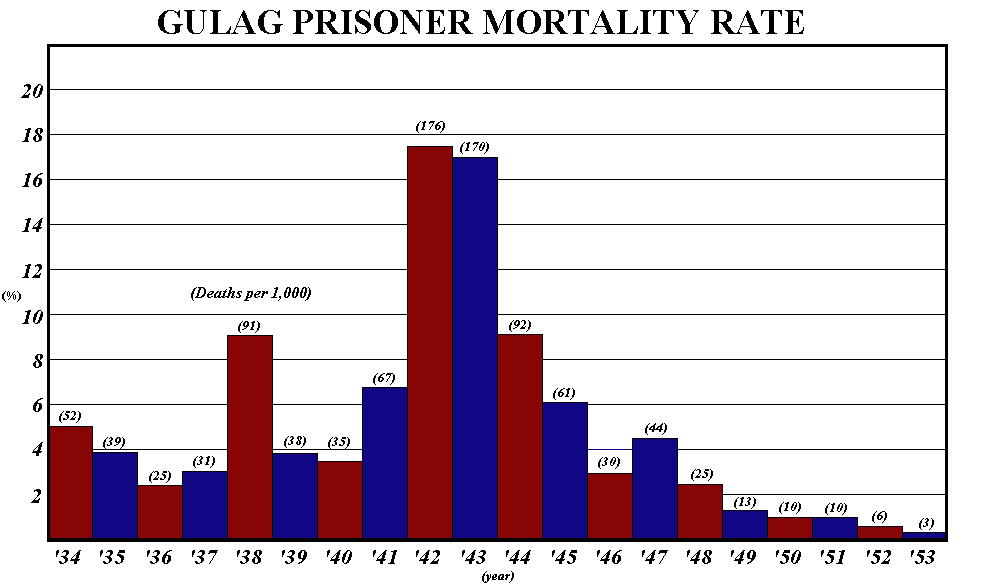 As far as I know, the number of Gulag deaths is about 700k, not “millions”, but I’m quoting this from memory so feel free to correct me with actual data if you have it. It’s easily disproven that Gulags were labor death camps by looking at the death rate over time: